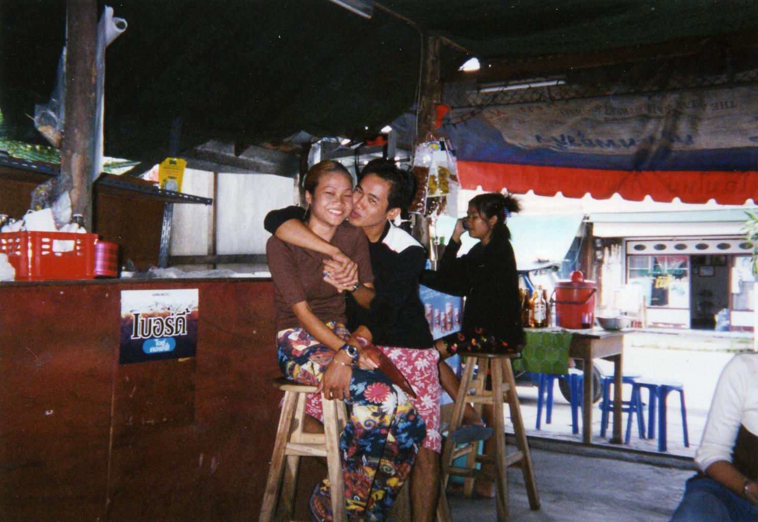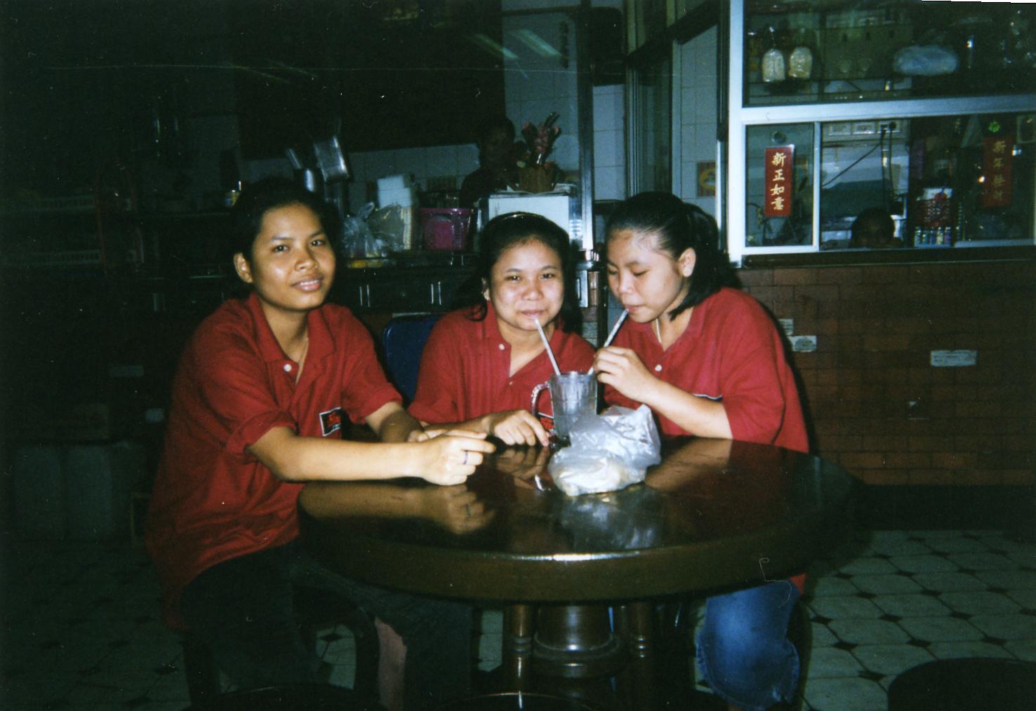 閉店時間になり、写真ダイマイ(いいかい)?ときくと、みんなお澄ましして寄ってきて、はい、ポーズ!女の子たちの年齢はだいたい14、5才で、みんなこの近所の中国系タイ人の子供たちです。ポーズをとって笑顔になった瞬間が実にかわいい。